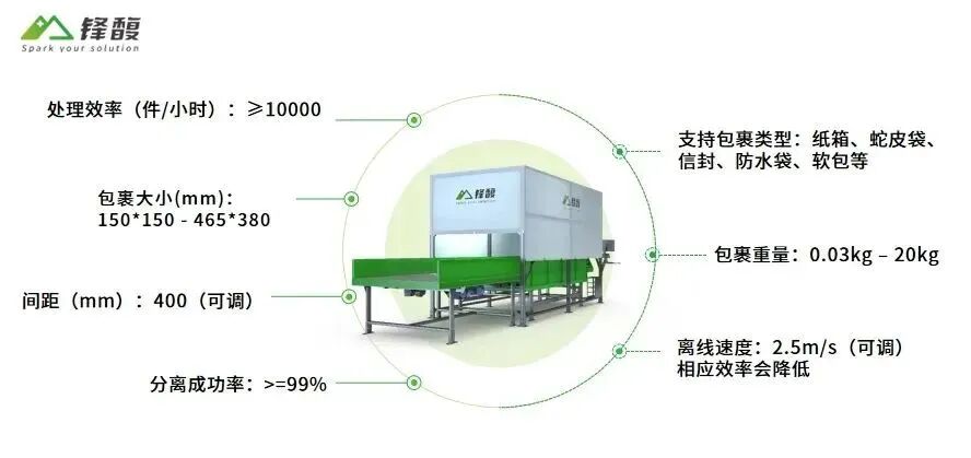 为满足快速分拣的市场需求,锋馥与上海复旦微电子联合开发推出了针对中小件包裹的10000件/小时的单件分离系统。一种能够对包裹进行整理、分离、智能排队,从而将批量包裹形成单件排列的“阵型”,与后道扫描系统配合,可以实现全自动输送和分拣,顺利完成订单处理。该系统利用高精度3D相机与深度学习技术,对包裹进行精准识别与定位,同时通过高效的控制方法,对模组皮带运动进行规划,保证包裹逐个且以固定间距离开系统。