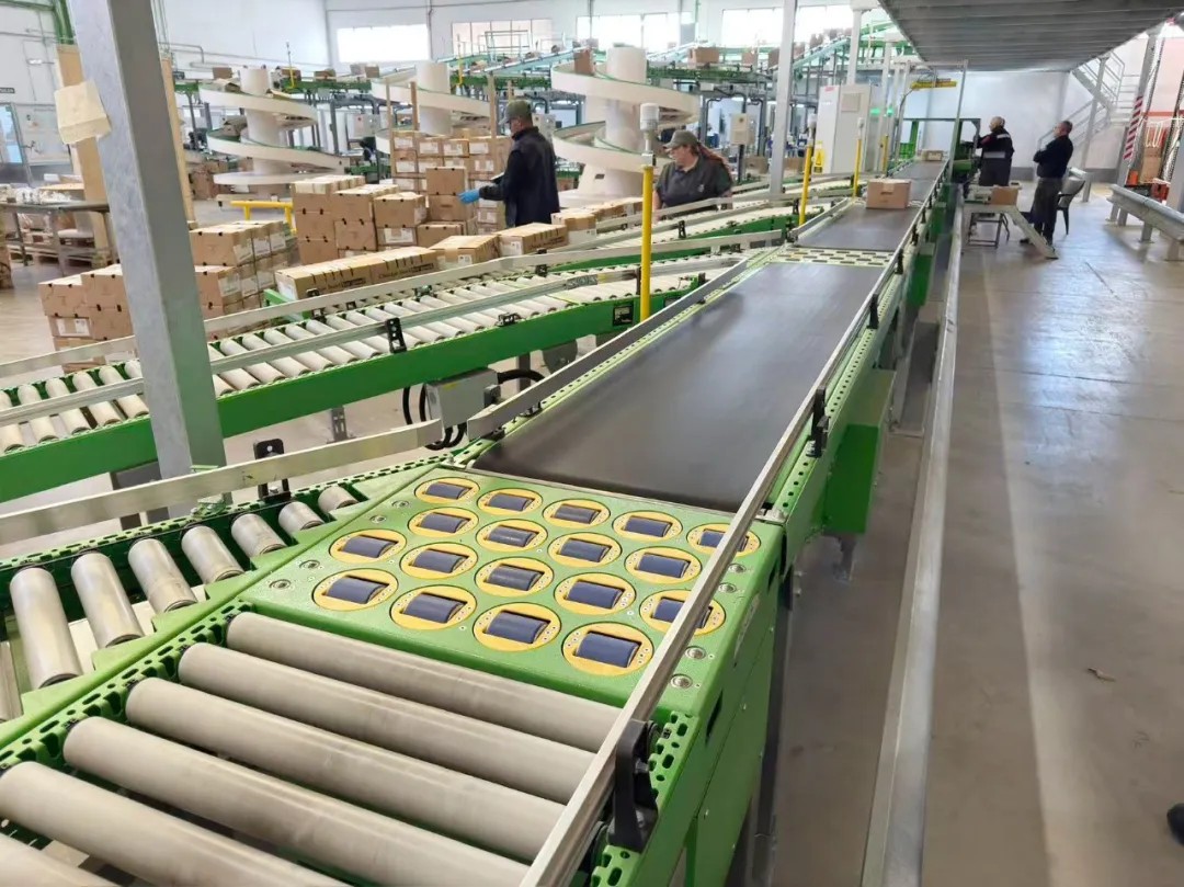 针对水果行业的特殊需求,在同一条滚筒线上同步实现未封口空纸箱进料与已封装满箱出料。系统根据各包装工位的实时状态,智能分配货箱至最优工位,并通过间距控制技术防止箱体碰撞。