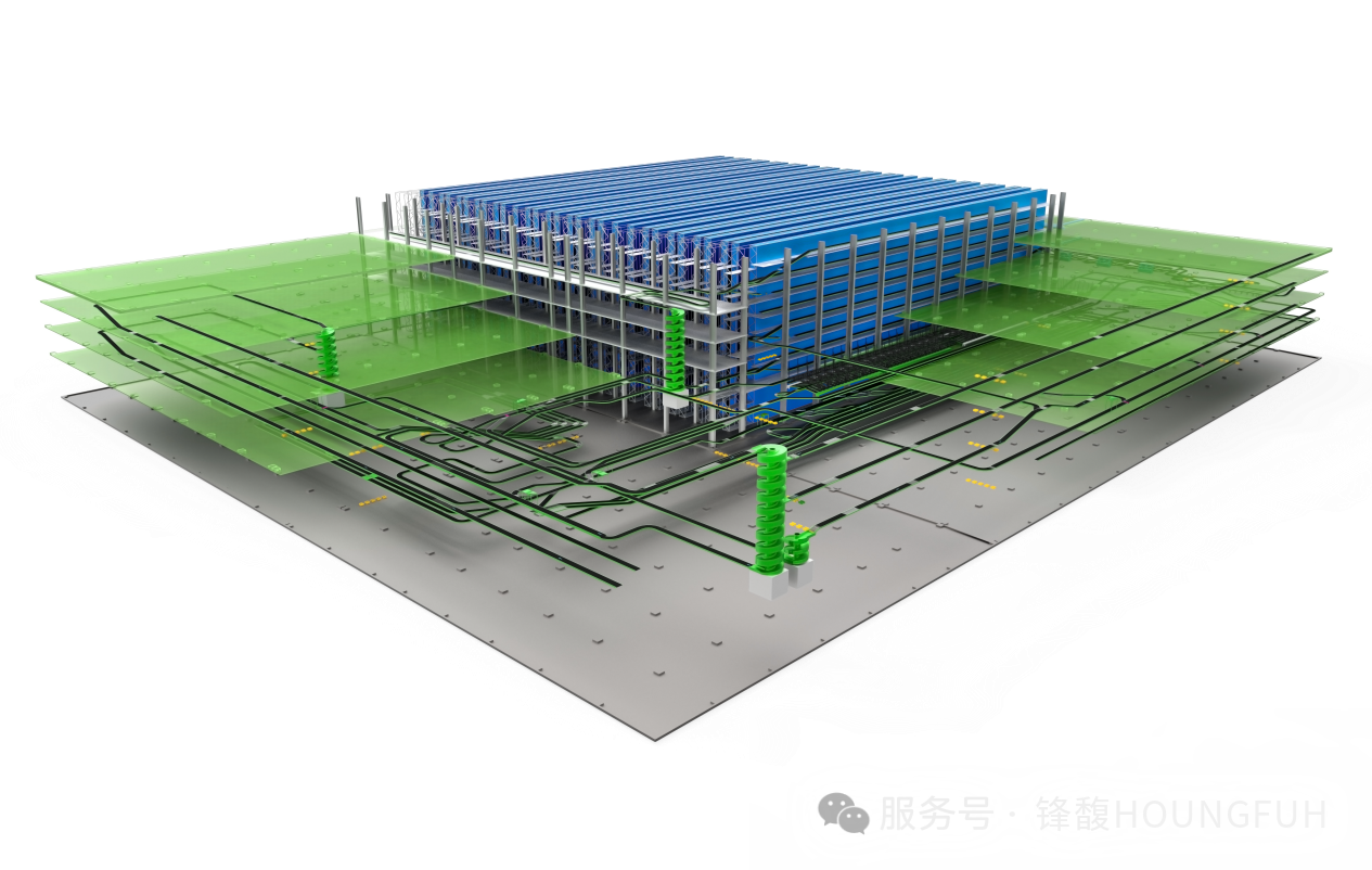 作为九州通规模最大、创新技术应用最多的单体医药物流中心,“神州一号”面临SKU上万、业务场景复杂、多楼层输送协同难等挑战。针对这些痛点,锋馥量身定制解决方案: